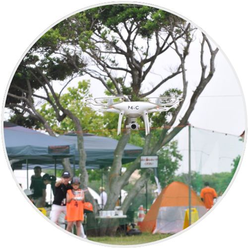 私たちインストラクターとスタッフは、国土交通省による全国包括許可を得て、 日本各地で撮影、点検等、業務フライトを数多く経験しています。業務でのご活用のほか、竣工記念や創立記念の集合写真・イベント撮影など様々なご依頼をお受けしています。