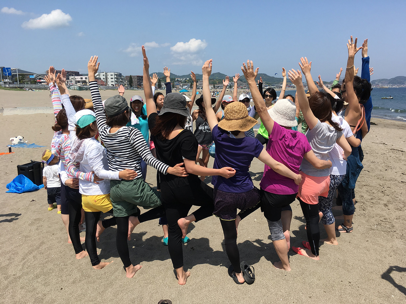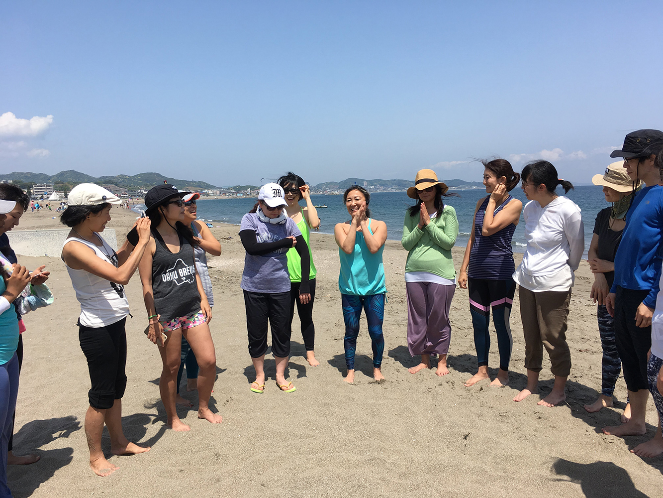 三浦市在住のヨガインストラクターChiekoさん主催のビーチヨガに