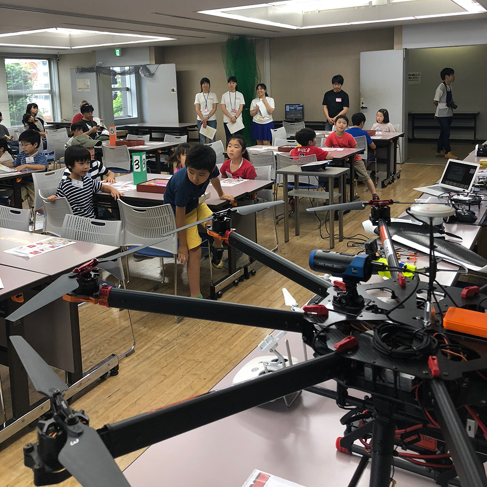 低学年の部、高学年の部と各定員30名のところ、165名の応募があり、子供達のドローンへの興味の高さを実感しました。講座は、座学と体験会の2部構成。前半はワークショップを挟みながらドローンへの理解を深めてもらい、後半は実証実験をトイドローンに落とし込んでミッションをクリアしてもらいます。