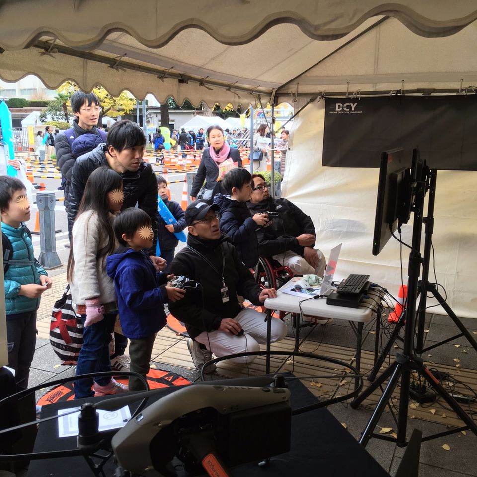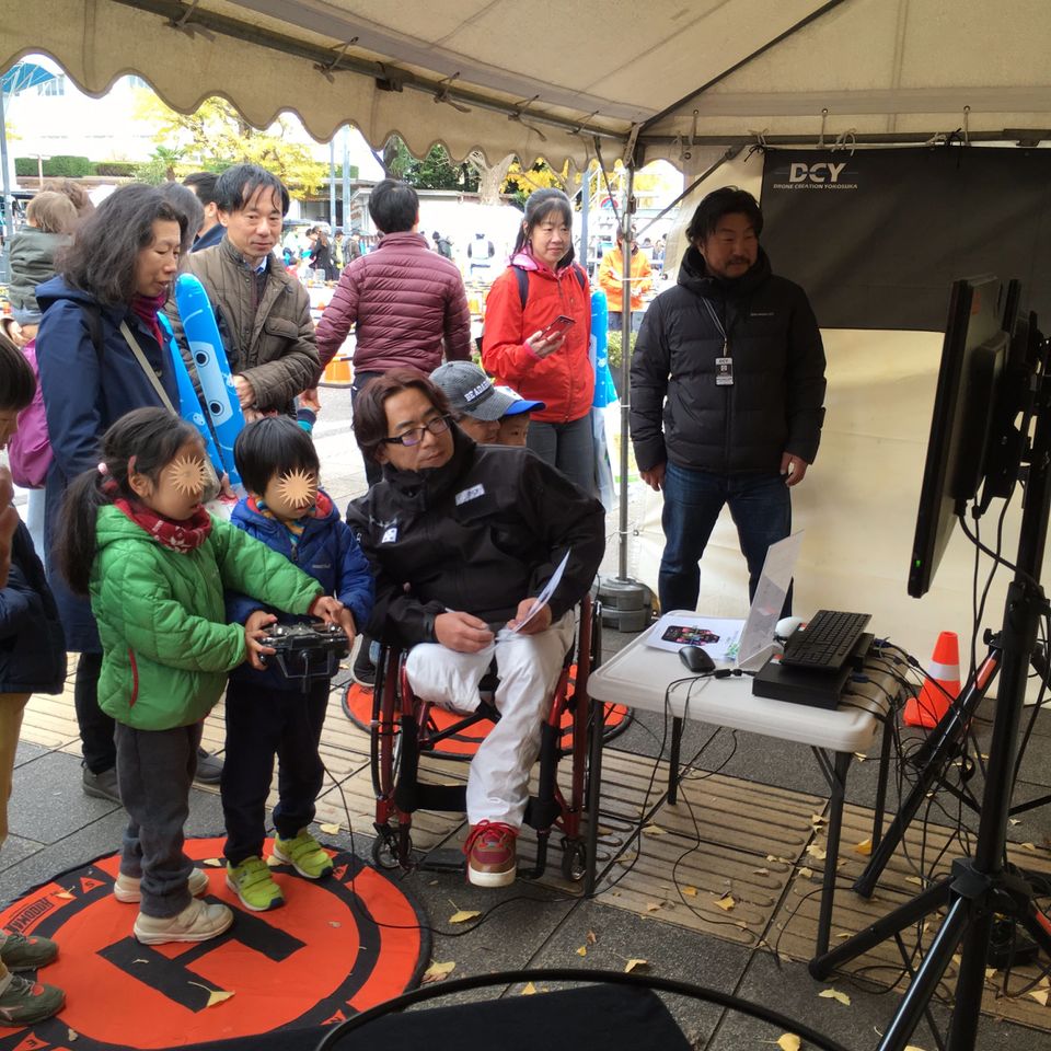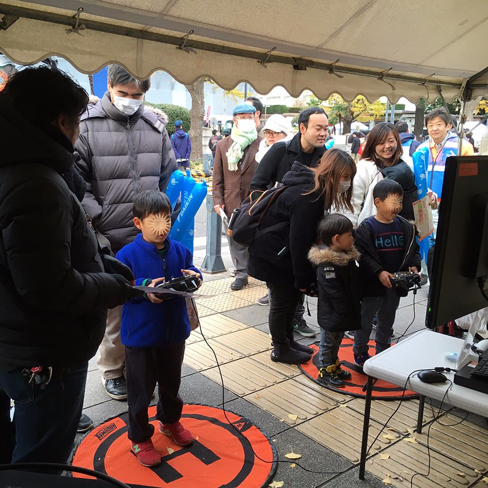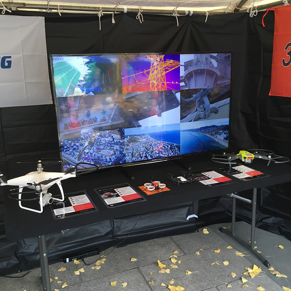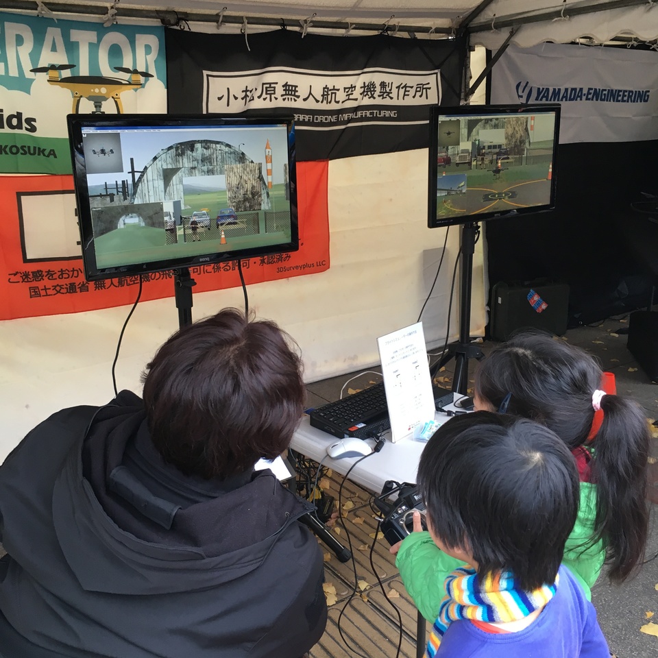 DCYは横須賀建設業協会様のブースの一部をお借りし、ドローン展示とフライトシミュレーター体験を行いました。トイドローンから産業機まで各種ドローンを展示し、多くの方に興味をもって見ていただくことができました。ドローン体験では子供たちの楽しそうな笑顔を何度も見ることができました。この体験が建設業に興味を持っていただくきっかけのひとつとなれば幸いです。関係者のみなさま、ありがとうございました。