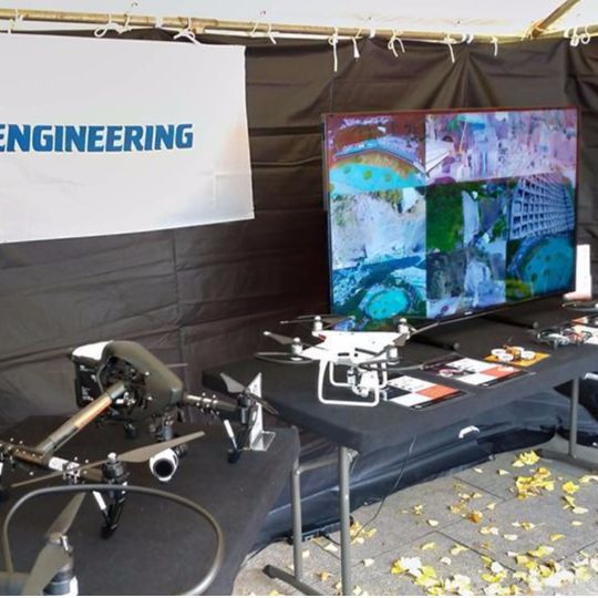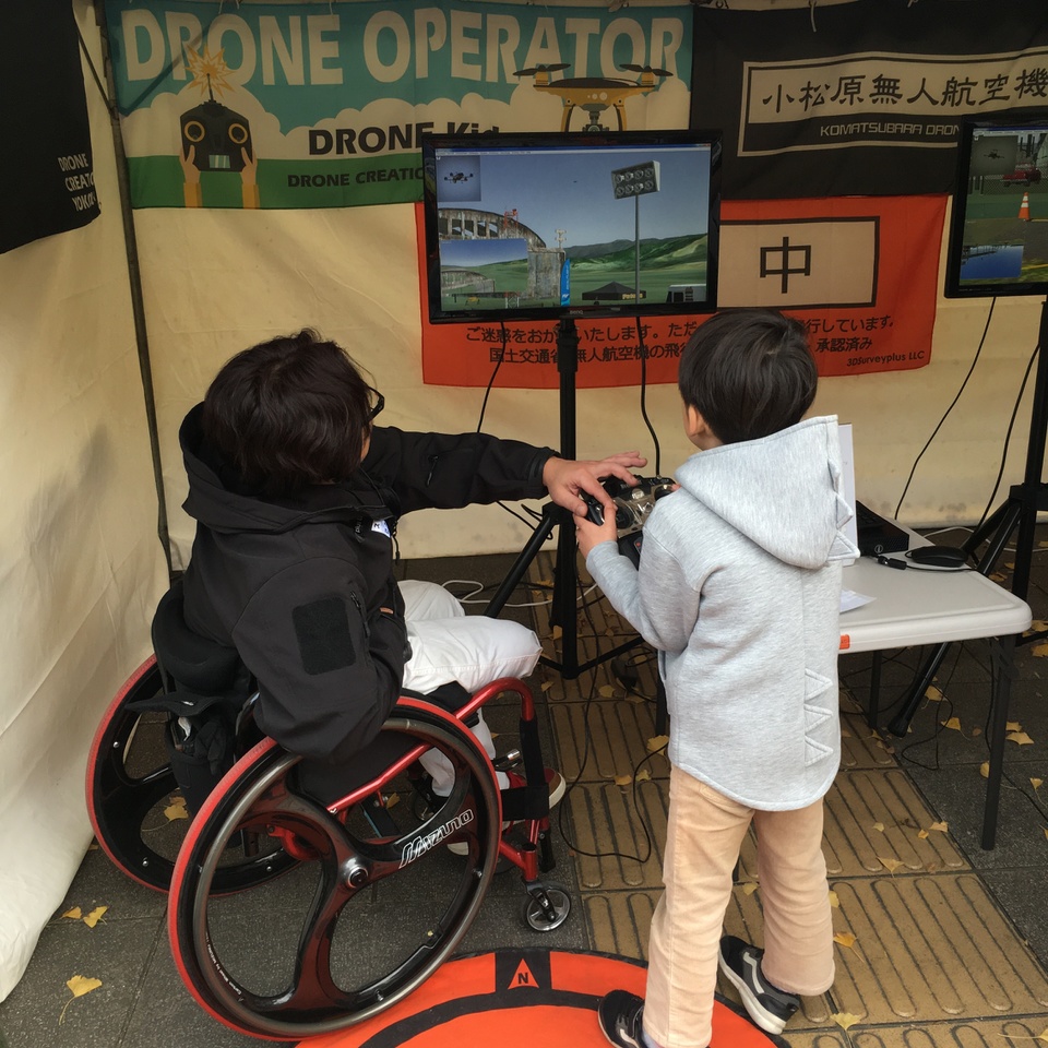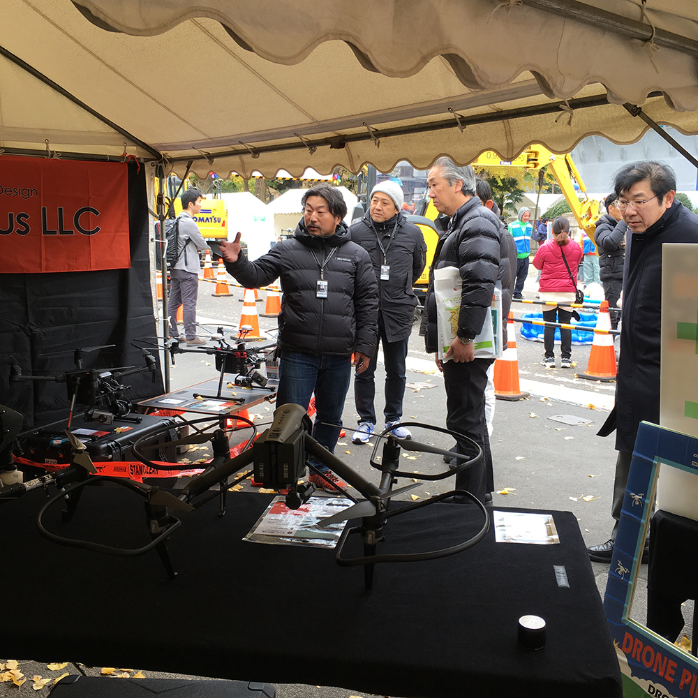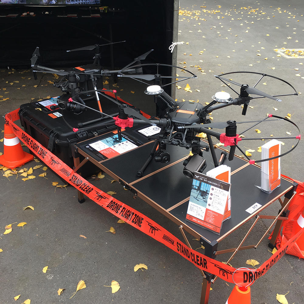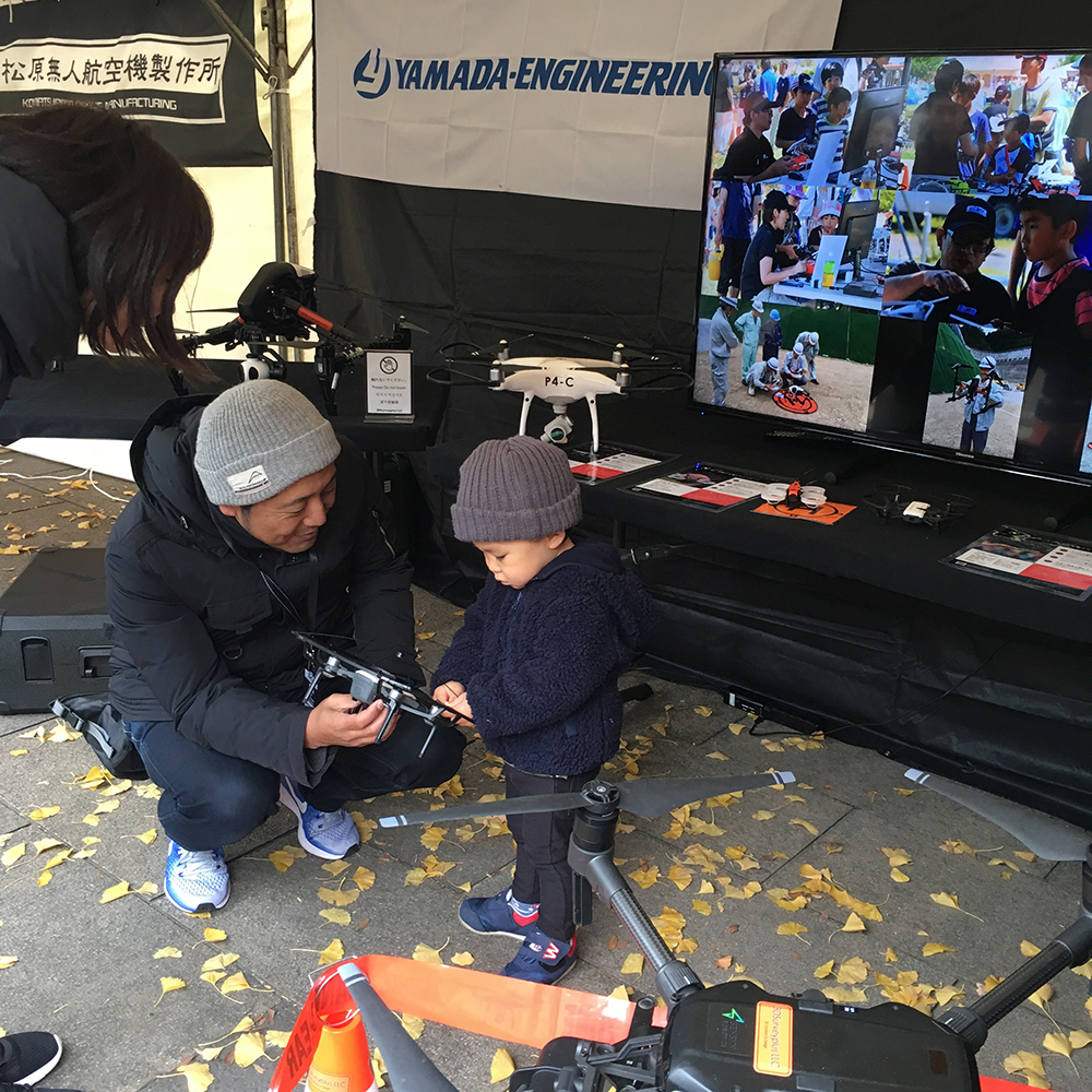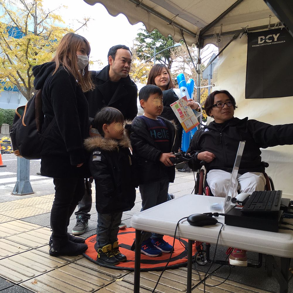 DCYは横須賀建設業協会様のブースの一部をお借りし、ドローン展示とフライトシミュレーター体験を行いました。トイドローンから産業機まで各種ドローンを展示し、多くの方に興味をもって見ていただくことができました。ドローン体験では子供たちの楽しそうな笑顔を何度も見ることができました。この体験が建設業に興味を持っていただくきっかけのひとつとなれば幸いです。関係者のみなさま、ありがとうございました。