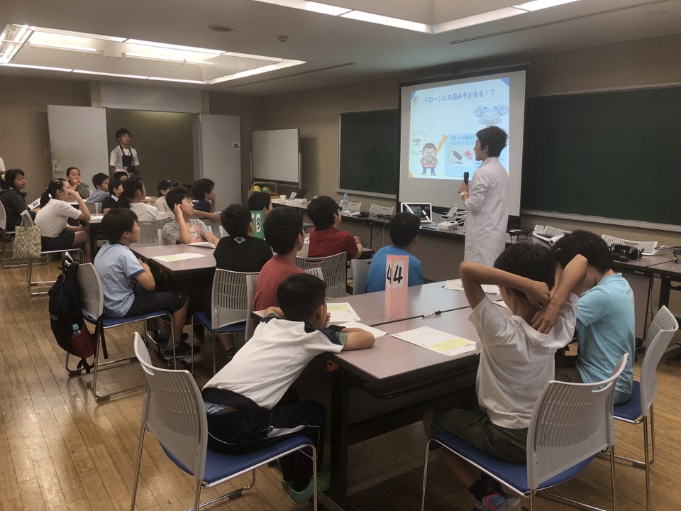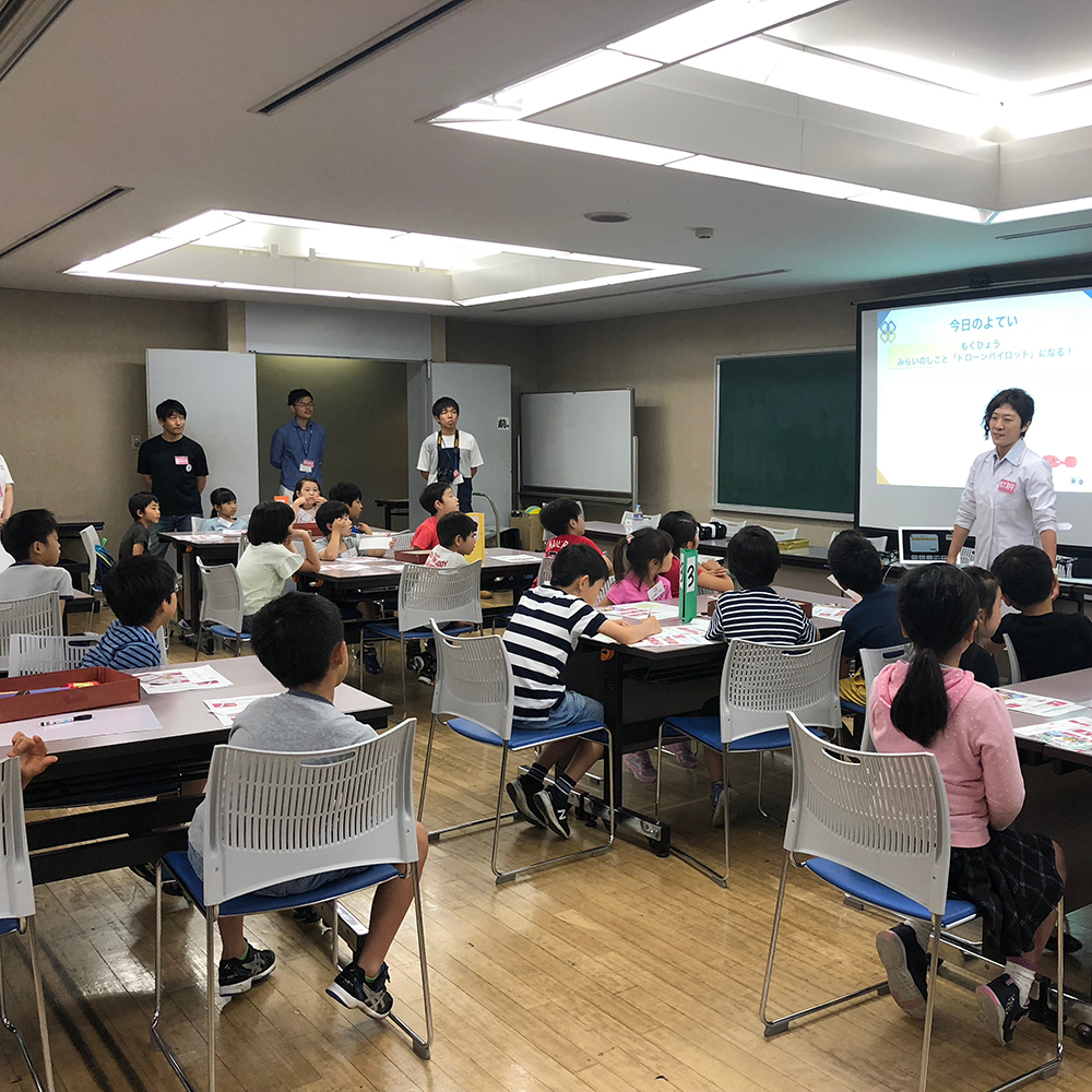 低学年の部、高学年の部と各定員30名のところ、165名の応募があり、子供達のドローンへの興味の高さを実感しました。講座は、座学と体験会の2部構成。前半はワークショップを挟みながらドローンへの理解を深めてもらい、後半は実証実験をトイドローンに落とし込んでミッションをクリアしてもらいます。